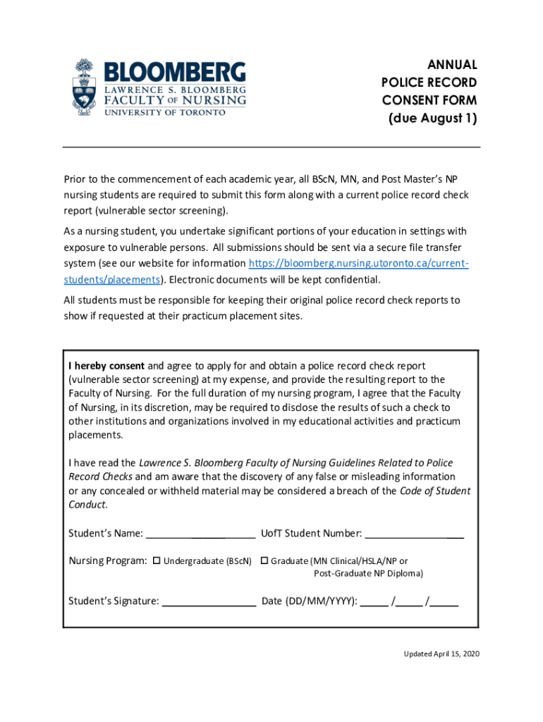 Get the free Annual Police Record Consent Form revised 15April2020FINAL.pdf