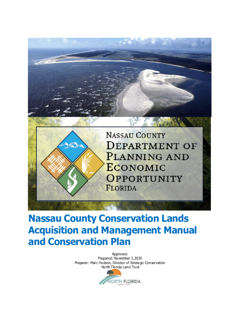 Nassau County Conservation Lands Acquisition and Management Manual and Conservation Plan Approved: Prepared: November 3,2020, Preparer: Marc Hudson, Director of Strategic Conservation North Florida
