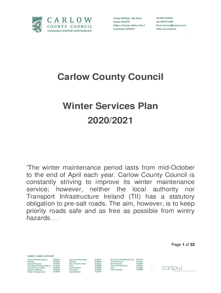 Carlos County Council Winter Services Plan 2020/2021The winter maintenance period lasts from mid-October to the end of April each year. Carlos County Council is constantly striving to improve its