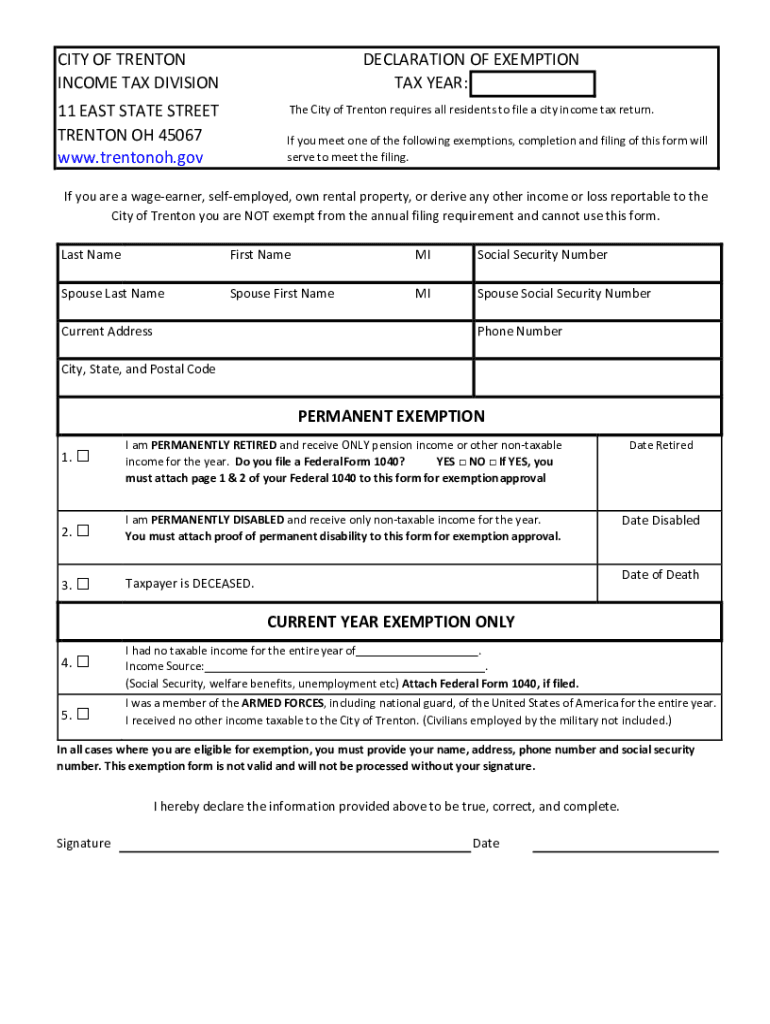 www.trentonoh.govThe City of Trenton requires all residents to file a city income tax return.