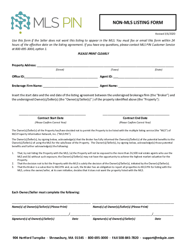 Non-mls listing formpub read-only is a form for listing properties that are not listed on the Multiple Listing Service and is only for reading purposes.