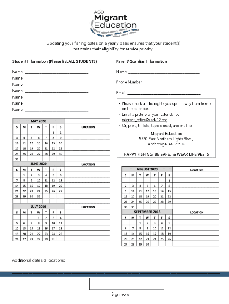 Updating your fishing dates on a yearly basis ensures that your student(s) maintains their eligibility for service priority. Migrant Education services. Student Information (Please list ALL STUDENTS)Parent/Guardian