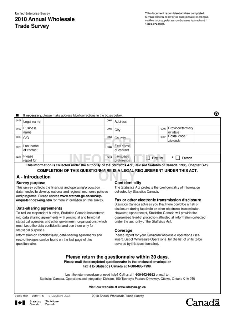 This document is confidential when completed. Si vows Perez reservoir CE questionnaire en Francis, vehicle nous appear AU humors sans fries servant : 18009729692. Unified Enterprise Survey2010 Annual