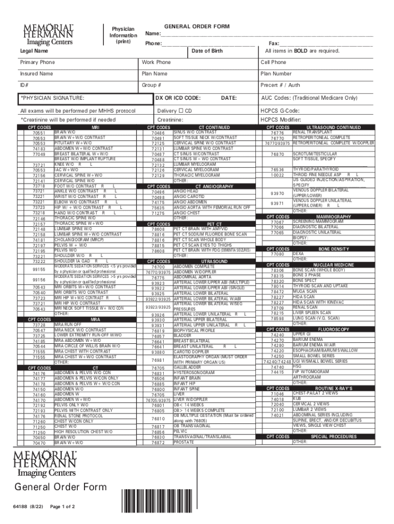 Physician Information (print) Legal NameGENERAL ORDER FORM Name:___ Phone:___ Date of Birthday:___ All items in BOLD are required.___ Primary Homework Photocell Phone ___ Insured Nameplate Numbered#Group