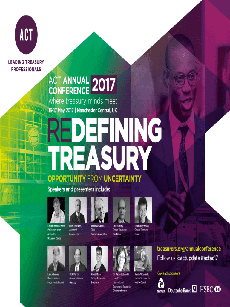 REDEFINING TREASURY OPPORTUNITY FROM UNCERTAINTY Speakers and presenters include:Lord Michael Dobbs, Parliamentarian & Creator, House of Cards Edwards, Anchor & Broadcaster Andrew Garner, CEO, Garner