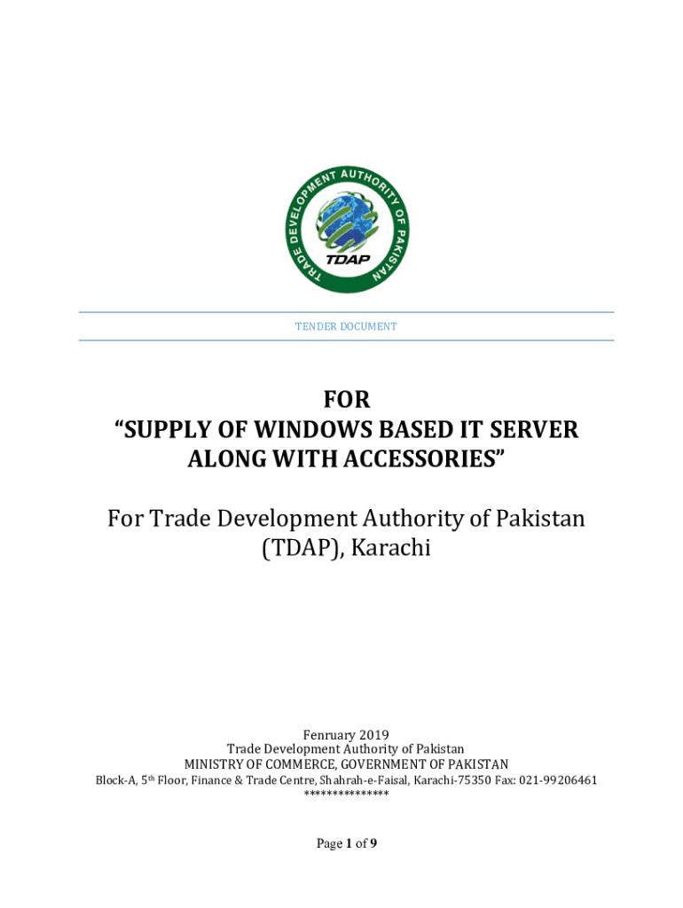 TENDER DOCUMENT SUPPLY OF WINDOWS BASED IT SERVER ALONG WITH ACCESSORIES For Trade Development Authority of Pakistan (TRAP), KarachiFenruary 2019 Trade Development Authority of Pakistan MINISTRY OF