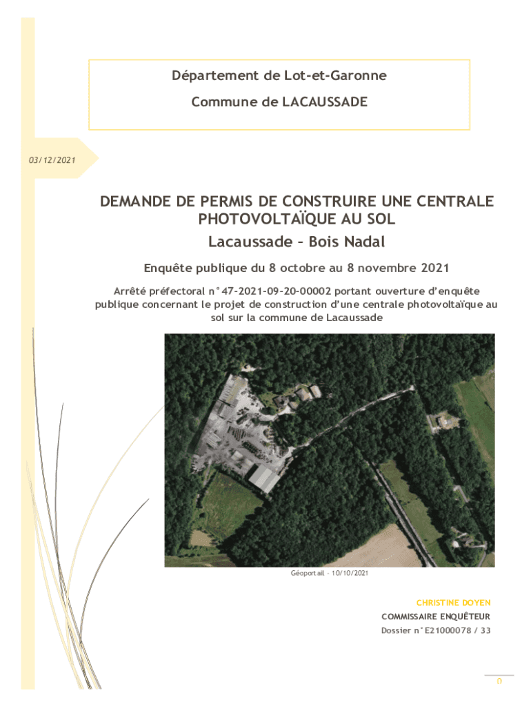 Commune de LACAUSSADE03/12/2021DEMANDE DE PERMIT DE CONSTRUE ONE CENTRAL