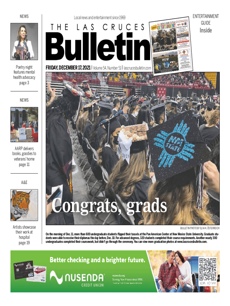 Newswoman news and entertainment since 1969ENTERTAINMENT GUIDEInsidePoetry night features mental health advocacy page 3FRIDAY, DECEMBER 17, 2021, I Volume 54, Number 51 I lascrucesbulletin.comNEWSAARP