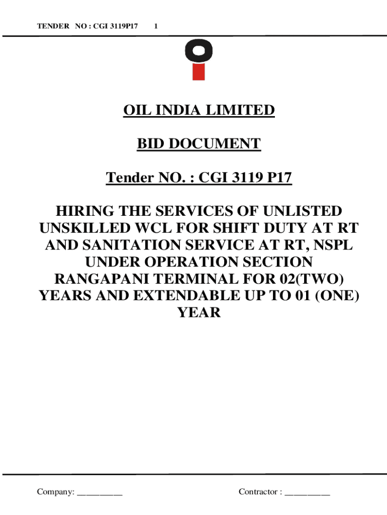 Get the free nit for tender no : cgi 3119 p17 - Oil India Limited