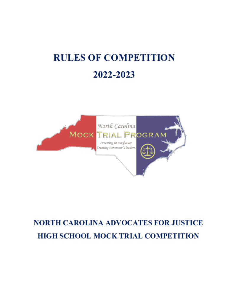 RULES OF COMPETITION 20222023NORTH CAROLINA ADVOCATES FOR JUSTICE HIGH SCHOOL MOCK TRIAL COMPETITIONTable of Contents Overview of the Competition and Message about the 20222023 Competition ...........................