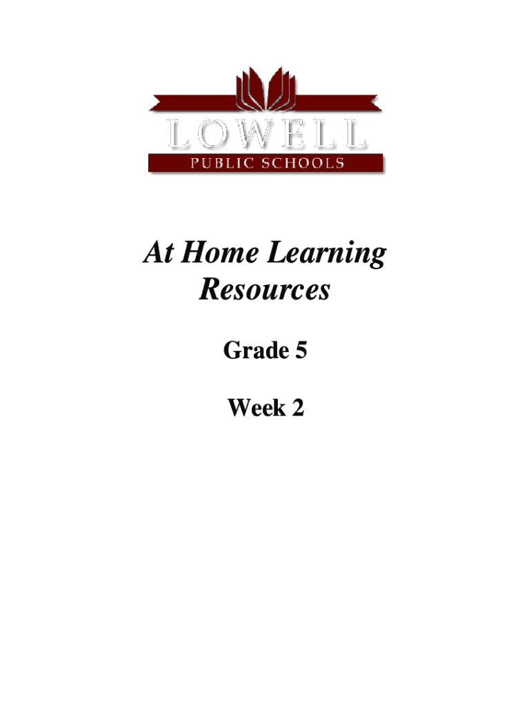 At Home Learning Resources Grade 5 Week 2ELA Grades 58 At Home Learning Choices Weeks 2 & 3 You can continue the reading, writing, and vocabulary work from Week 1 OR continue online learning to use