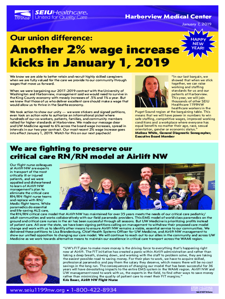 Harbor view Medical Center January 7, 2019Our union difference:Another 2% wage increase kicks on January 1, 2019, We know we are able to better retain and recruit highly skilled caregivers when we