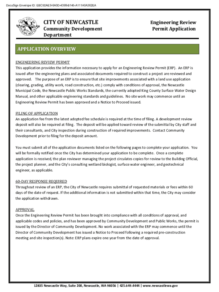 DocuSign Envelope ID: EBC5DAE96A0D4398B145A111A0A362EACITY OF NEWCASTLECommunity Development DepartmentEngineering Review Permit ApplicationACTION APPLICATION OVERVIEW ENGINEERING REVIEW PERMIT This