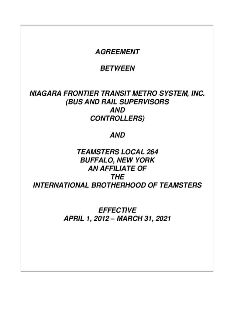 BETWEENNIAGARA FRONTIER TRANSIT METRO SYSTEM, INC.