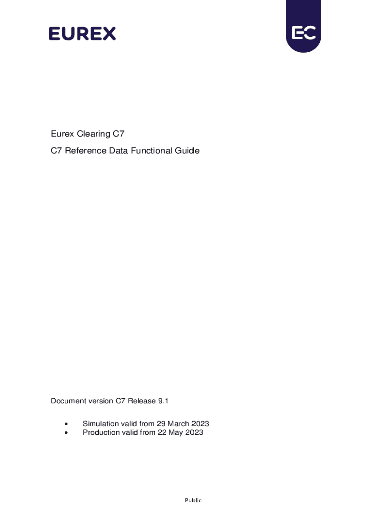 Durex Clearing C7 Reference Data Functional GuideDocument version C7 Release 9.1 Simulation valid from 29 March 2023 Production valid from 22 May 2023PublicChange History DateReleaseChange09 September