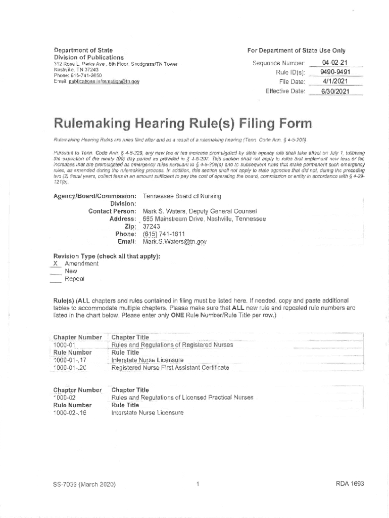 Department of State Division of Publications Department of State Use Only312 Rosa L. Parks Ave, 8th Floor, Snodgrass/TN Tower Nashville, TN 37243 Phone: 6157412650 Email: gubllcm1o NS.lnformal1on@ln.gov040221