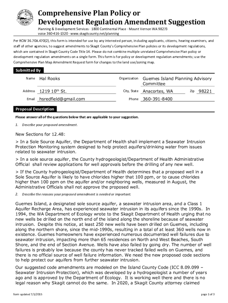 Comprehensive Plan Policy or Development Regulation Amendment Suggestion Planning & Development Services 1800 Continental Place Mount Vernon WA 98273 voice 3604161320 www.skagitcounty.net/planning