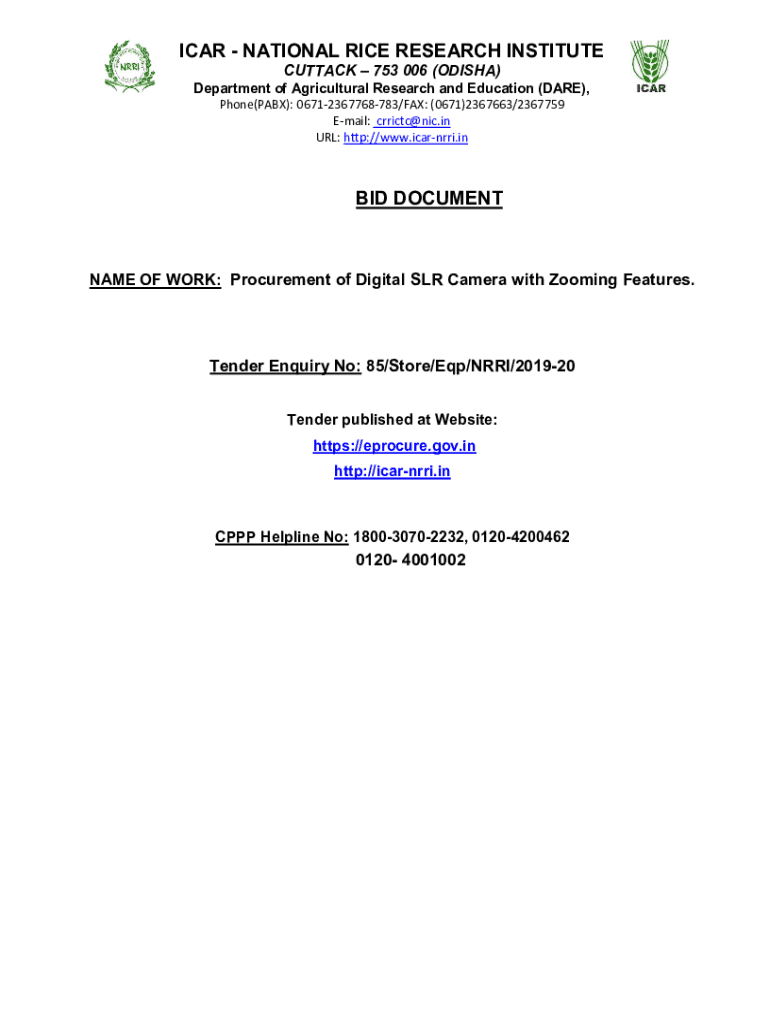 CAR NATIONAL RICE RESEARCH INSTITUTE CUTTACK 753 006 (ODISHA) Department of Agricultural Research and Education (DARE), Phone(PBX): 06712367768783/FAX: (0671)2367663/2367759 Email: crrictc@nic.in