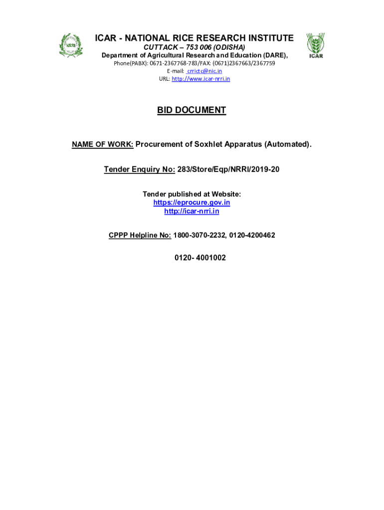 CAR NATIONAL RICE RESEARCH INSTITUTE CUTTACK 753 006 (ODISHA)Department of Agricultural Research and Education (DARE), Phone(PBX): 06712367768783/FAX: (0671)2367663/2367759 Email: crrictc@nic.in URL: