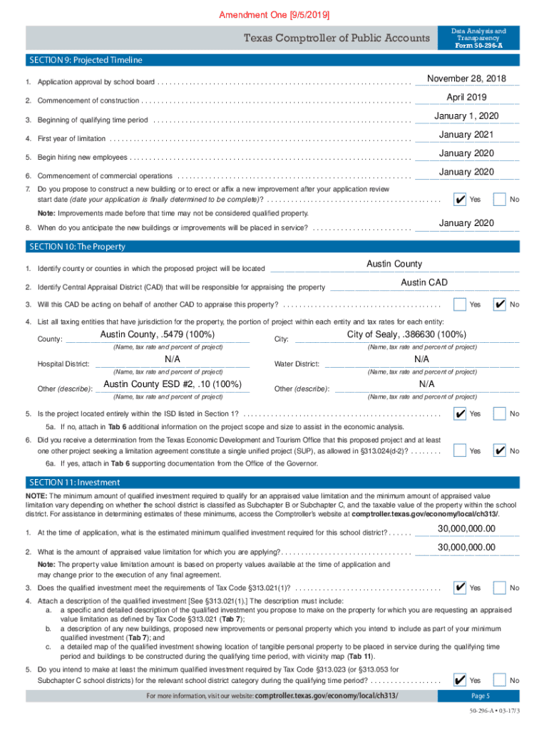 Amendment One [9/5/2019]September 5, 2019, Superintendent Sheryl Moore cc Texas Comptroller of Public Accounts Seal Independent School District 939 Tiger Lane Seal, Texas 77474 RE: Amendment One to