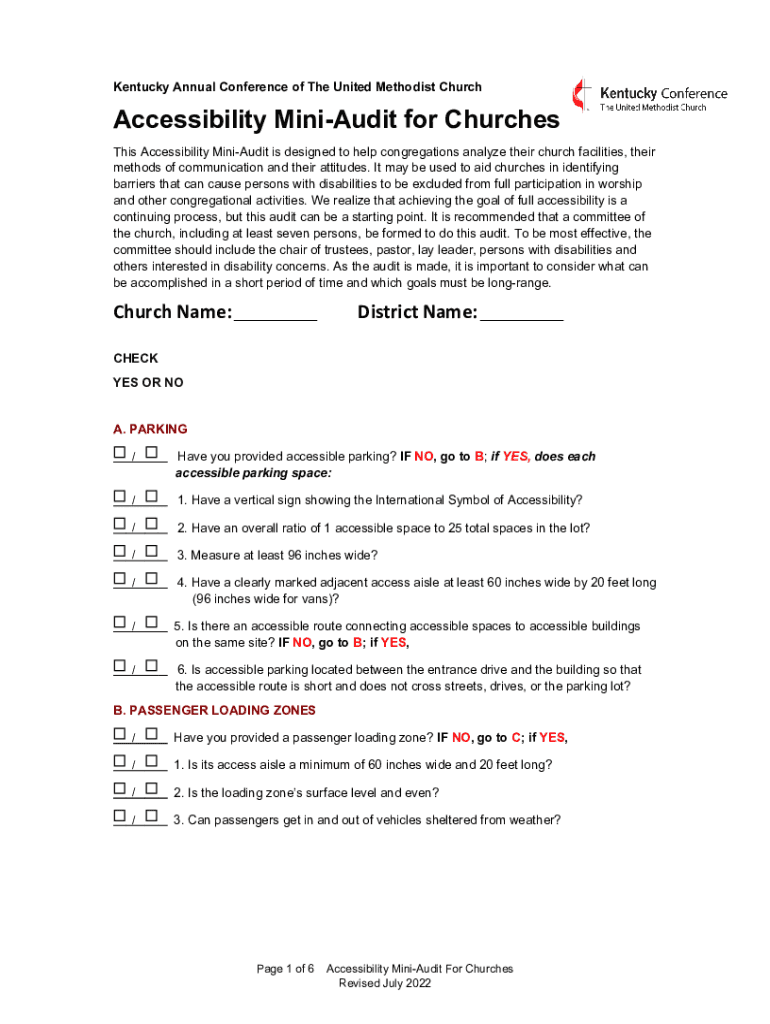 Kentucky Annual Conference of The United Methodist ChurchAccessibility Miniaturist for Churches This Accessibility Miniaturist is designed to help congregations analyze their church facilities, their
