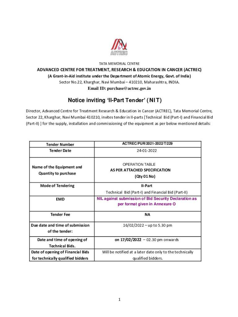 TATA MEMORIAL CENTREADVANCED Center FOR TREATMENT, RESEARCH & EDUCATION IN CANCER (ACT REC) (A Granting institute under the Department of Atomic Energy, Govt. of India) Sector No.22, Shanghai, Navi