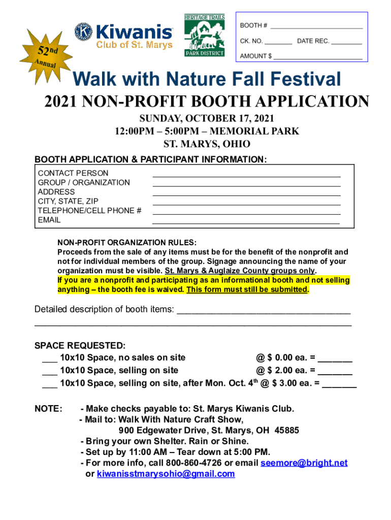 BOOTH APPLICATION & PARTICIPANT INFORMATION: CONTACT PERSON GROUP / ORGANIZATION ADDRESS CITY, STATE, ZIP TELEPHONE/CELL PHONE # EMAIL___ ___ ___ ___ ___ ___NONPROFIT ORGANIZATION RULES: Proceeds