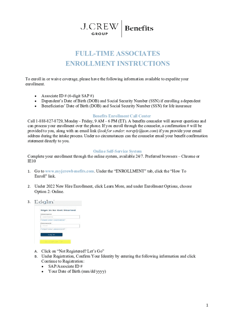 FULL TIME ASSOCIATES ENROLLMENT INSTRUCTIONS To enroll in or waive coverage, please have the following information available to expedite your enrollment. Associate ID # (6digit SAP #) Dependents Date