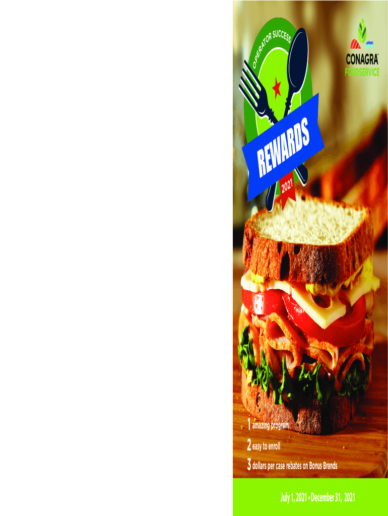 REWARDS 2021 ENROLL ONLINE AT CONAGRAFOODSERVICE.COM OR SUBMIT THIS FORM. Establishment Name: ___ Contact Name: ___ Job Title: ___ Street Address: ___ City: ___ State: ___ Zip: ___ Primary Distributor: