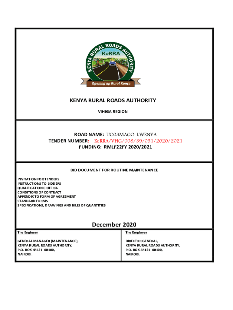 To fill out Kerra Vihiga Regional Offices, you need to provide information about the road construction project, including details on the contractor, project timeline, budget, and any environmental impact assessments.