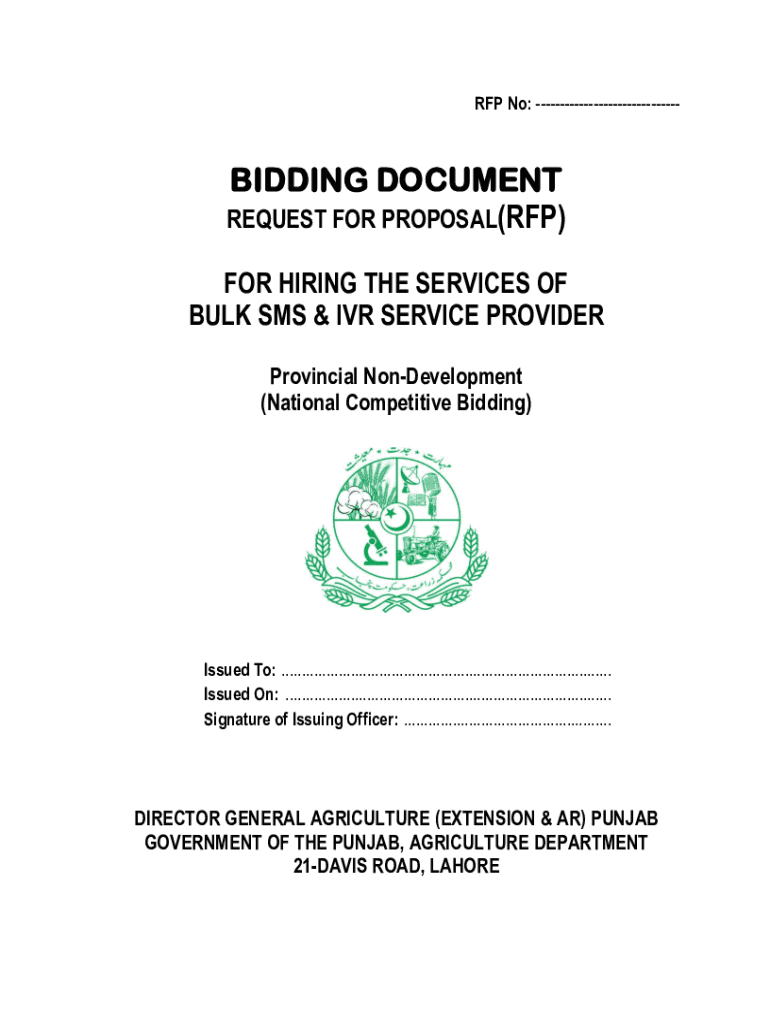 RFP No: BIDDING DOCUMENT REQUEST FOR PROPOSAL(RFP) FOR HIRING THE SERVICES OF BULK SMS & IVR SERVICE PROVIDER Provincial Development (National Competitive Bidding)Issued To: .................................................................................