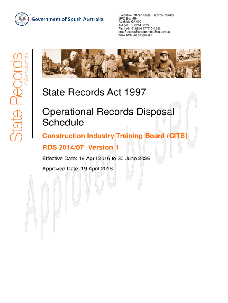 Executive Officer, State Records Council GPO Box 464 Adelaide SA 5001 Tel (+61 8) 8204 8773 Fax (+61 8) 8204 8777 DX:336 srsaRecordsManagement@sa.gov.au www.archives.sa.gov.auState Records Act 1997