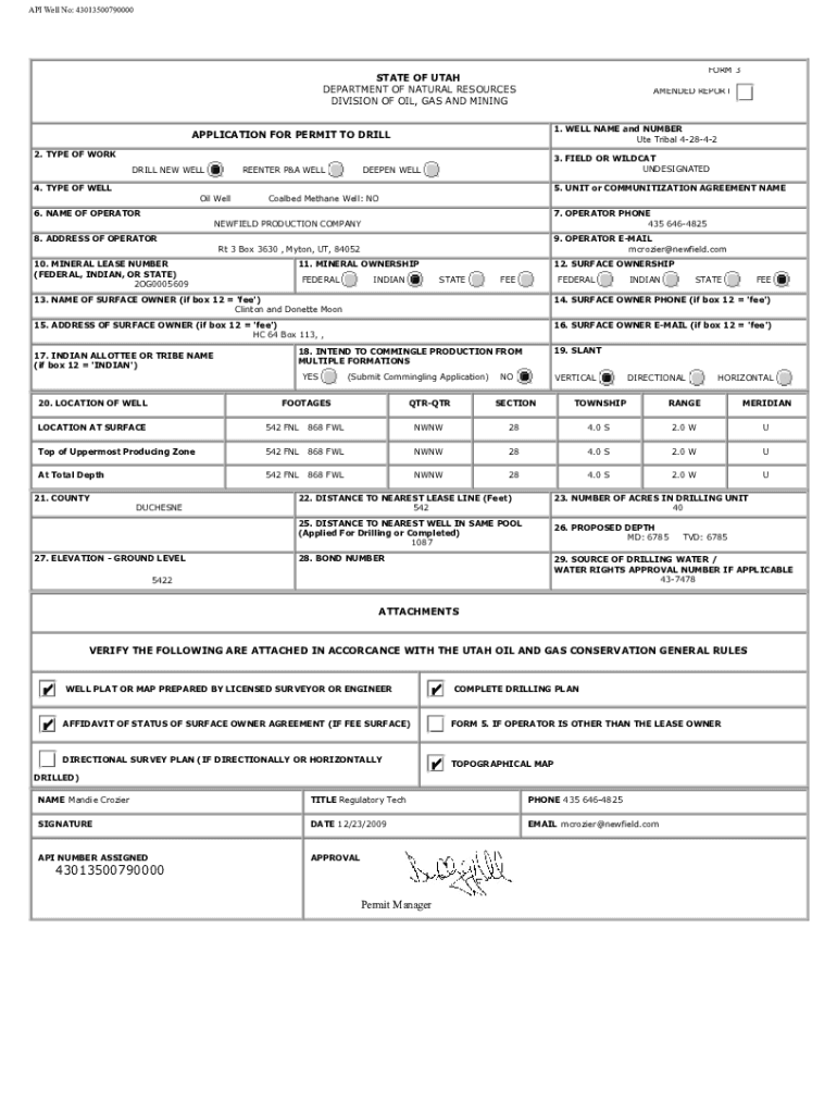 API Well No: API Well No: 43013500790000 43013500790000EORM 3 3 FORMULATE OF UTAH STATE DEPARTMENT OF NATURAL RESOURCES DIVISION OF OIL, OIL, GAS AND MINING DIVISIONAMENDED REPORT REPORT1. WELL, WELL