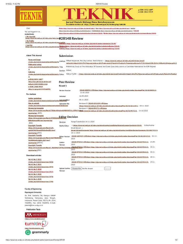 9/18/22, 11:42 PM#28148 Reviewer You are logged in as...tomierfando My JournalsHome (https://ejournal.undip.ac.id/index.php/teknik/index) / User (https://ejournal.undip.ac.id/index.php/teknik/user)