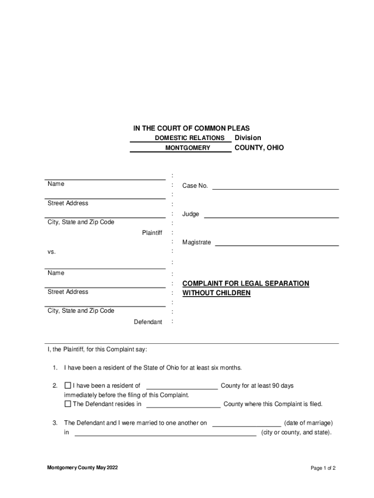 IN THE COURT OF COMMON PLEAS Division DOMESTIC RELATIONS COUNTY, OHIO MONTGOMERY: Name:Case No.: Street Address City, State and Zip Code Plaintiff: :Judge: : :Magistrate:vs.: Name: :Street Address: