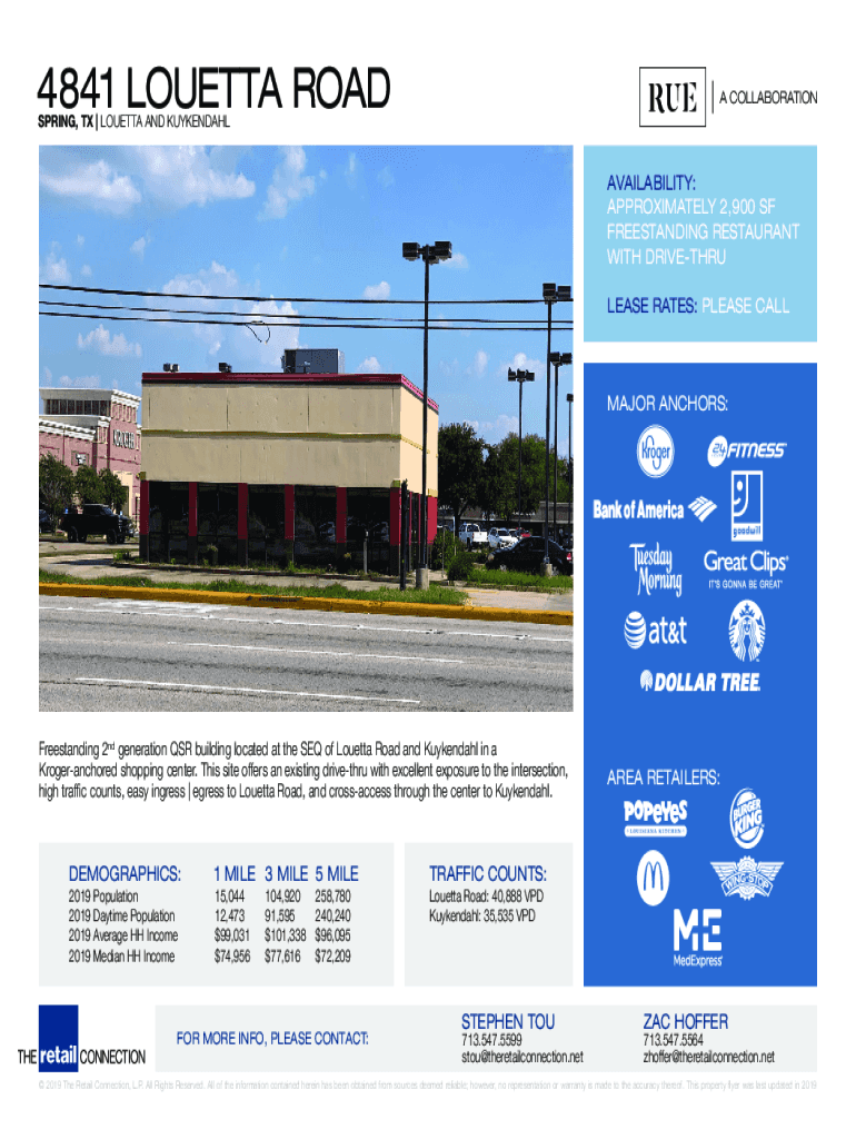 4841 LORETTA ROAD COLLABORATIONSPRING, TX | LORETTA AND KUYKENDAHLAVAILABILITY: APPROXIMATELY 2,900 SF FREESTANDING Restaurants WITH DRIVER LEASE RATES: PLEASE CALLAO ANCHORS:Freestanding 2nd generation