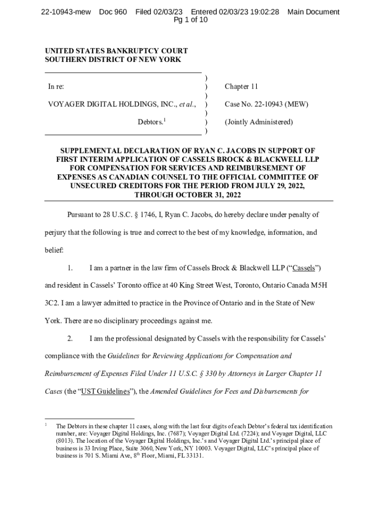 Get the free Chapter 11 ) VOYAGER DIGITAL HOLDINGS, INC. et al.,1