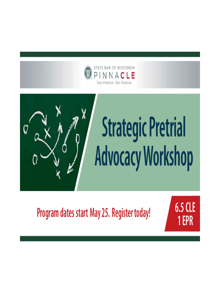 Strategic Pretrial Advocacy Workshop Program dates start May 25. Register today!6.5 CLE 1 Strategic Pretrial Advocacy WorkshopSchedule 8:00 registration 8:30 pretrial Advocacy and Overview of the