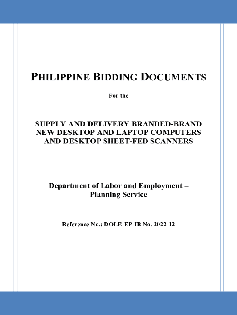 PHILIPPINE BIDDING DOCUMENTS For resupply AND DELIVERY BRANDEDBRAND NEW DESKTOP AND LAPTOP COMPUTERS AND DESKTOP SHEET FED SCANNERSDepartment of Labor and Employment Planning ServiceReference No.:
