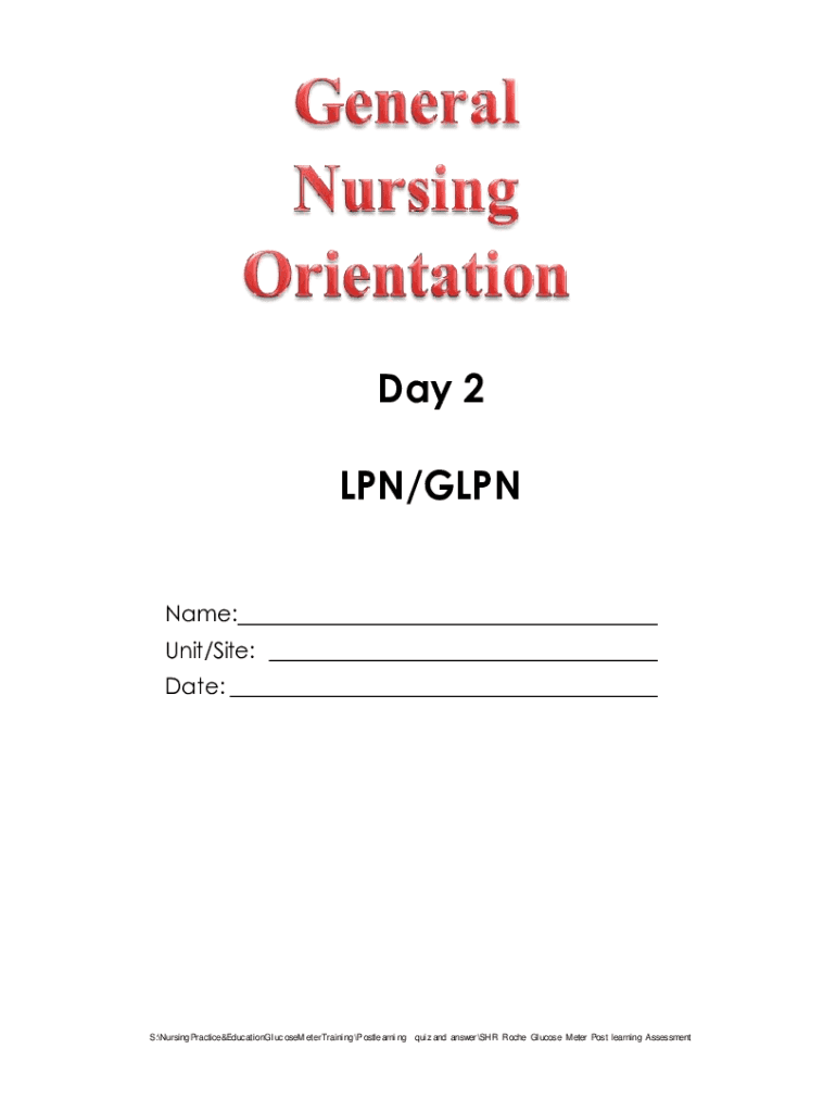 Day 2 LPN/GLEN Name: Unit/Site: Date's:NursingPractice&Educ national UC OEM terrain ngPostlearni NG quiz and answer SHR Roche Glucose Meter Post learning AssessmentPICC Review Quiz 1.PICC lines can