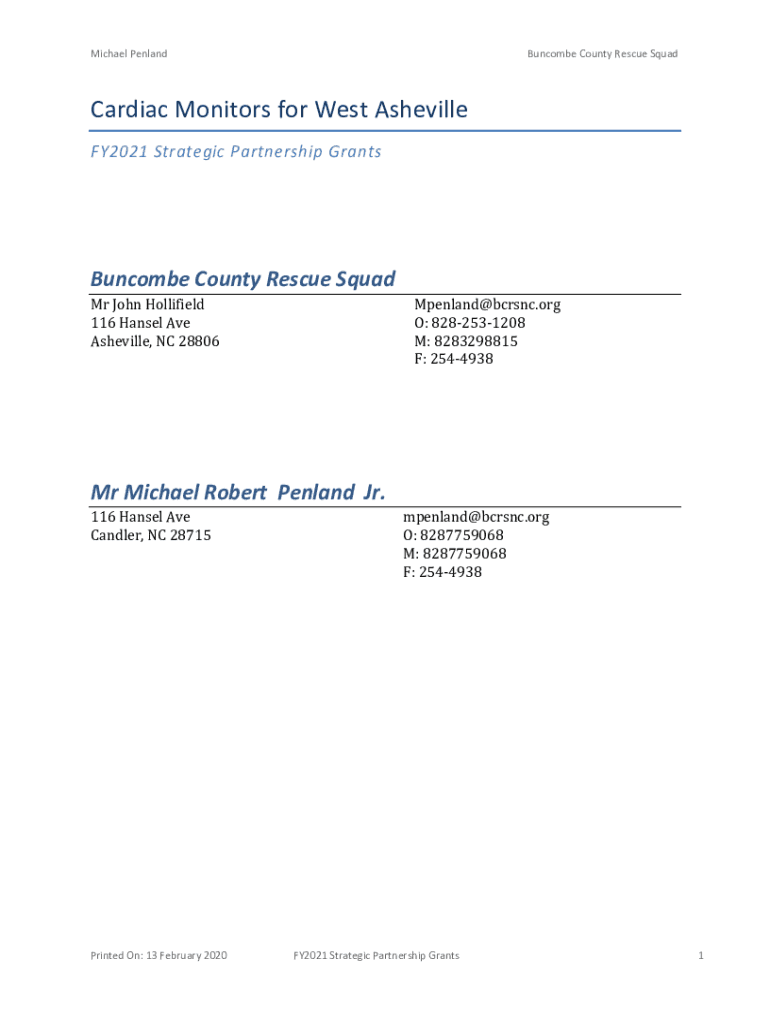 FY2021 Strategic Partnership GrantsBuncombe County Rescue Squad