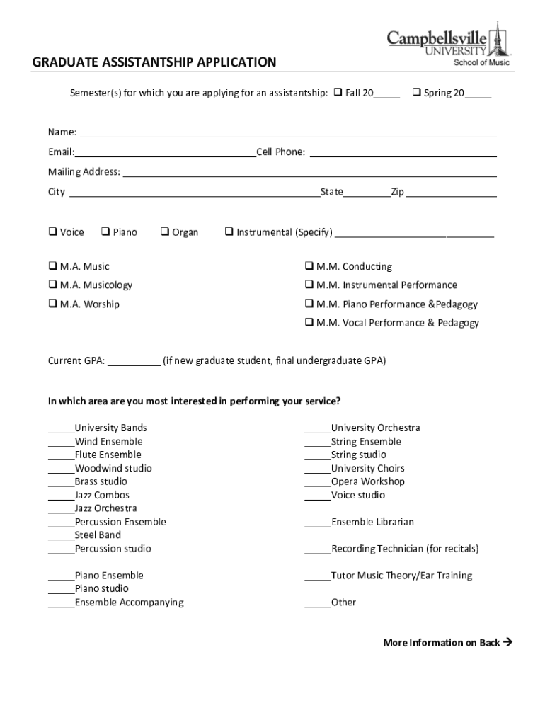 Graduate Assistantship Application is not the form you're looking for?Search for another form here.