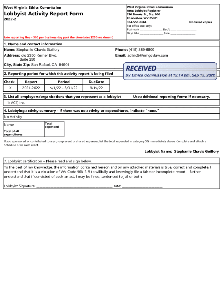 Get the free Name: Stephanie Chavis Guillory - ethics wv