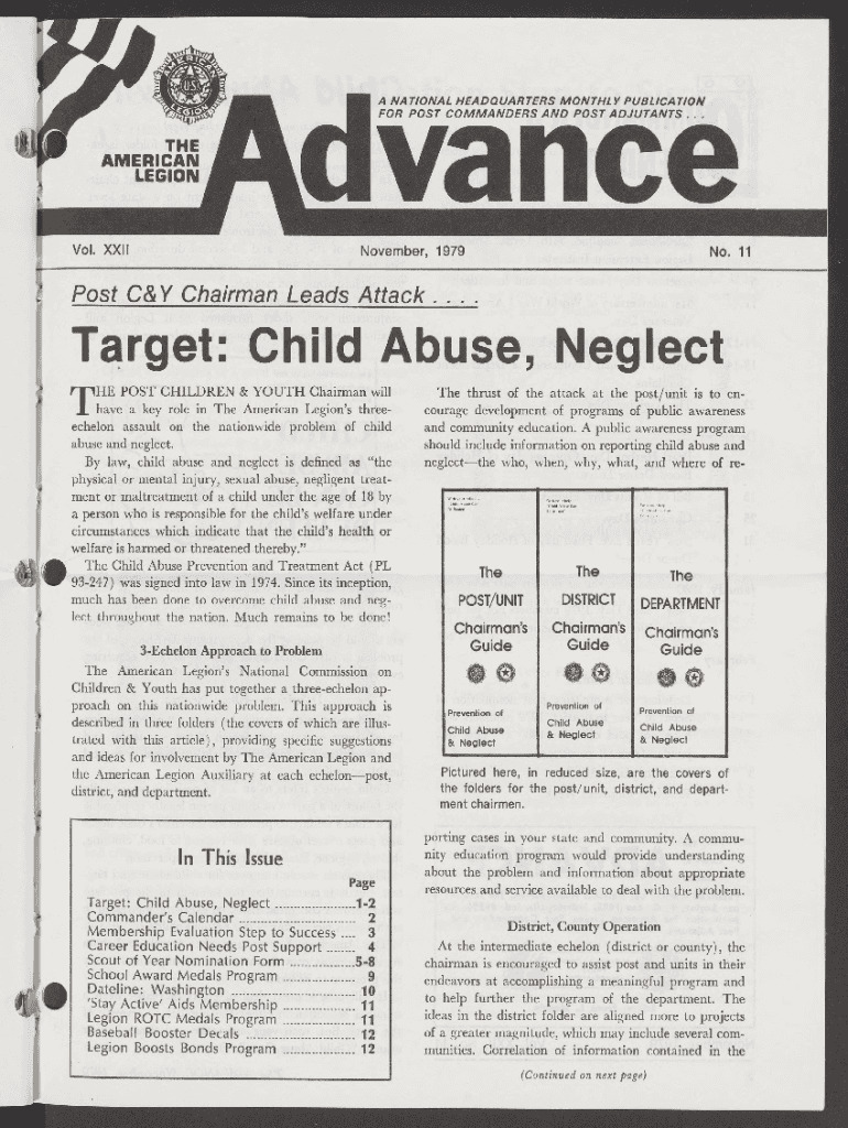 Post C&Y Chairman Leads Attack Target: Child Abuse, Neglect 1HE POST CHILDREN & YOUTH Chairman will have a key role in The American Legions three echelon assault on the nationwide problem of child
