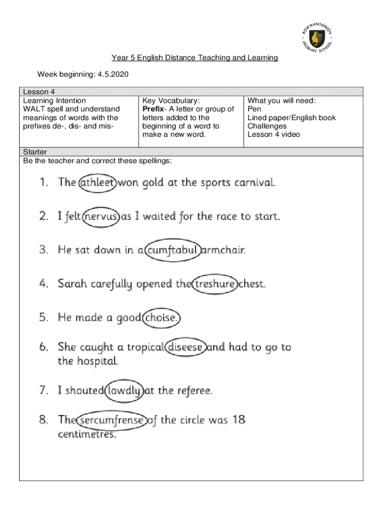 Year 5 English Distance Teaching and Learning