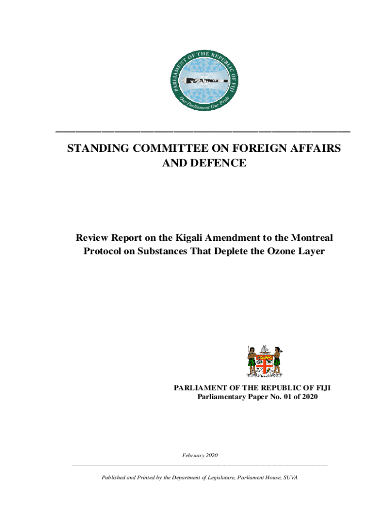 ___ STANDING COMMITTEE ON FOREIGN AFFAIRS AND DEFENCEReview Report on the Kigali Amendment to the Montreal Protocol on Substances That Deplete the Ozone LayerPARLIAMENT OF THE REPUBLIC OF FIJI Parliamentary
