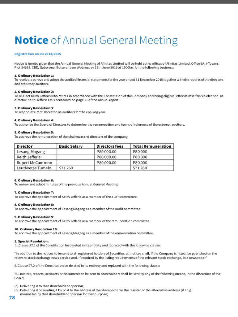 Get the free NOTICE IS HEREBY GIVEN that the Eighth Annual General ...