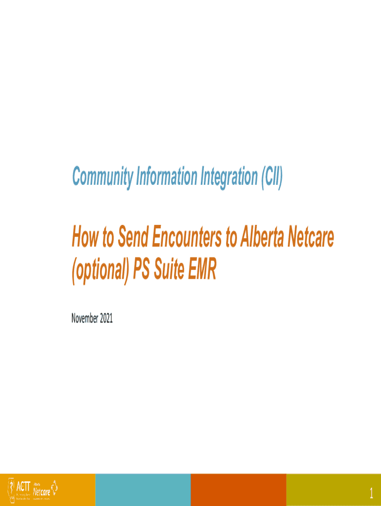 Community Information Integration (CII)How to Send Encounters to Alberta Nectar (optional) PS Suite EMR November 20211Four simple steps to participate in CII: 1. Learn about CII and readiness requirements