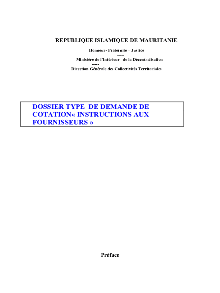 Obtenir le gratuit DOSSIER TYPE DE DEMANDE DE COTATION INSTRUCTIONS ...