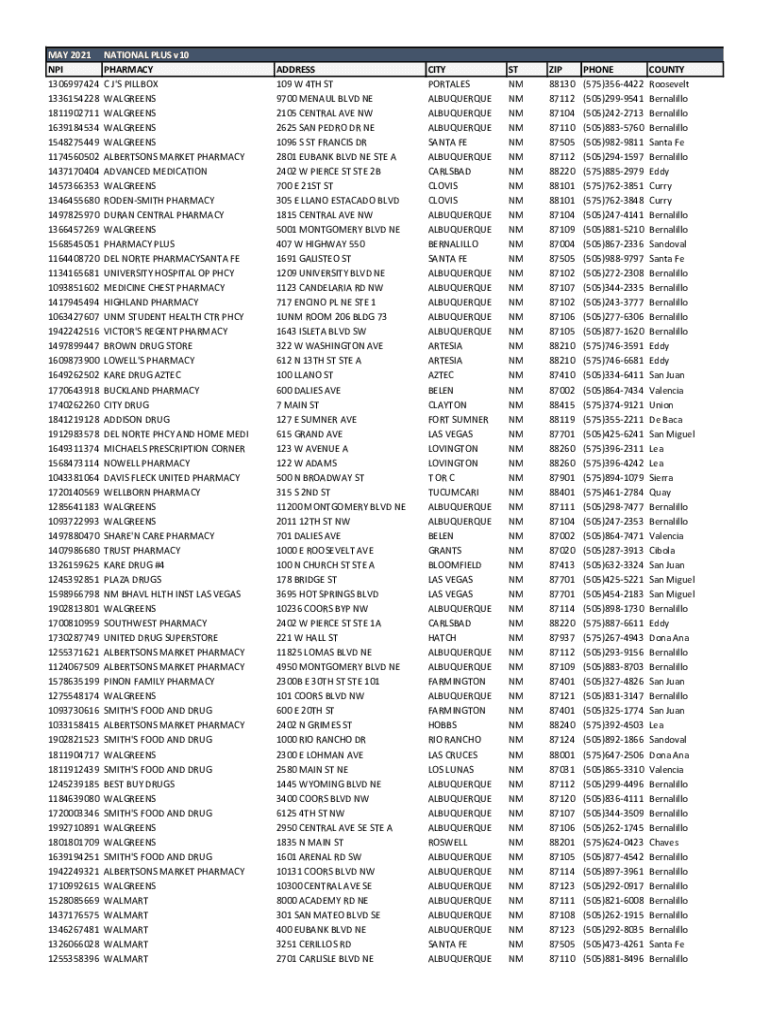 MAY 2021 NPI 1306997424 1336154228 1811902711 1639184534 1548275449 1174560502 1437170404 1457366353 1346455680 1497825970 1366457269 1568545051 1164408720 1134165681 1093851602 1417945494 1063427607